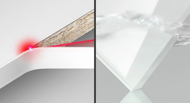 - Mejor sellado del canto. La consecuencia directa de esta ventaja es que las filtraciones de agua hacia el interior del tablero prácticamente desaparecen. Con ello se consigue incrementar la vida útil del mueble y reducir su deterioro. También se evita la acumulación de suciedad en la junta.